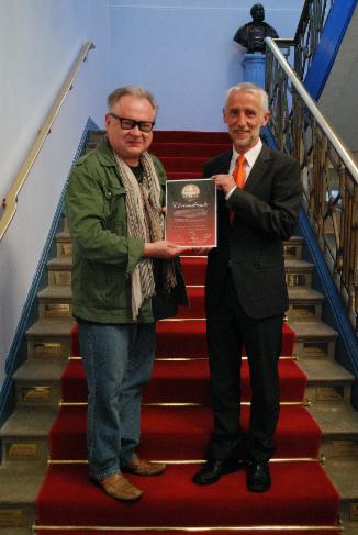"Dein ist mein ganzes Herz" machte ihn 1985 berühmt. Auch sonst hat Heinz Rudolf Kunze in seinen Liedern und Texten viel zu sagen. Im Juli 2o14 durfte ich dem Rockpoeten die Urkunde als Ehrenkünstler des König Albert Theaters überreichen.