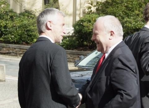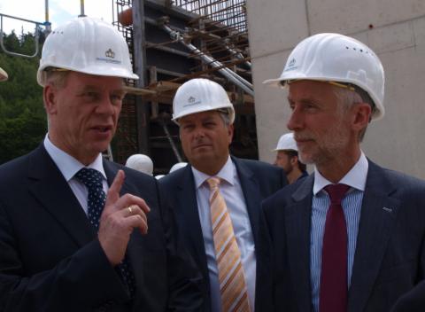 Im Juli 2o14 besucht Prof. Dr. Georg Unland die Baustelle des neuen Solethermalbades. Seit 2oo8 begleitet er das Amt des Sächsischen Staatsministers der Finanzen.
